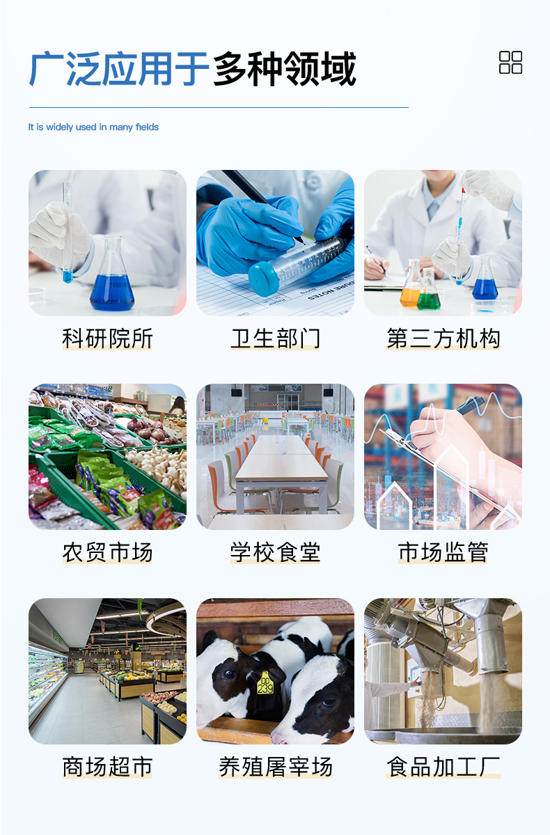 廣泛應用于質量監督檢驗、工商管理、油炸食品生產基地、食藥監局、衛生部門、肉制品食品深加工企業、商場超市、各大食品安全監測系統等單位使用。