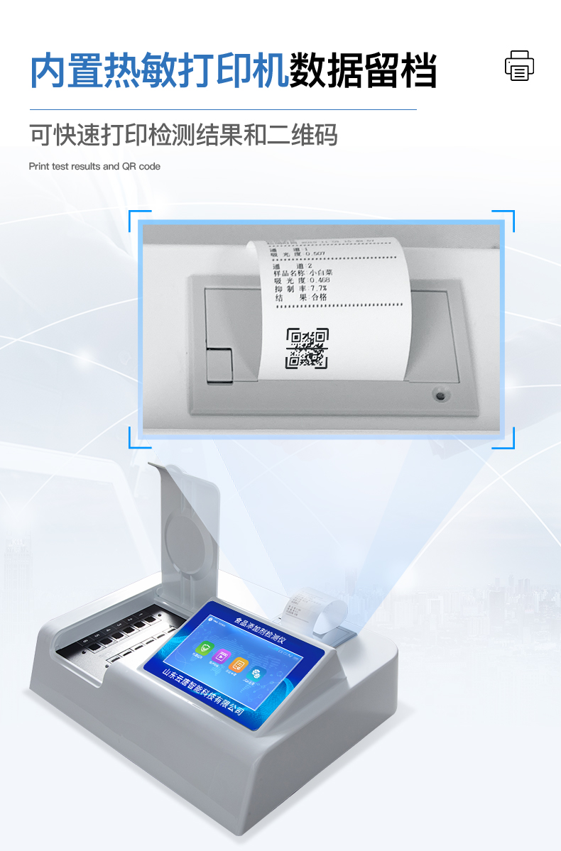 5、配備新一代嵌入式熱敏打印機,可選擇手動打印或者自動打印,檢測完成可自動打印檢測報告和二維碼。